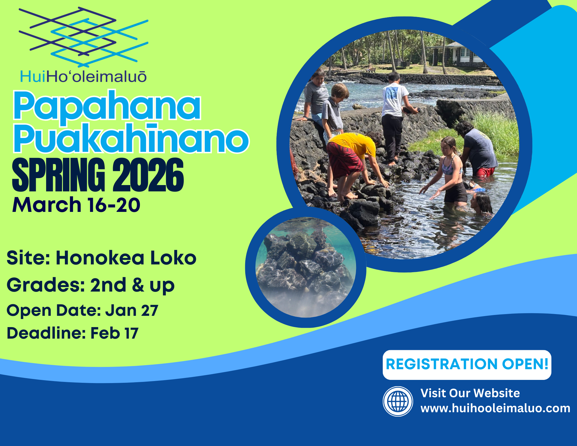 Hui Hoʻoleimaluō is pleased to share that registration is now open for Papahana Puakahīnano – Spring 2026!